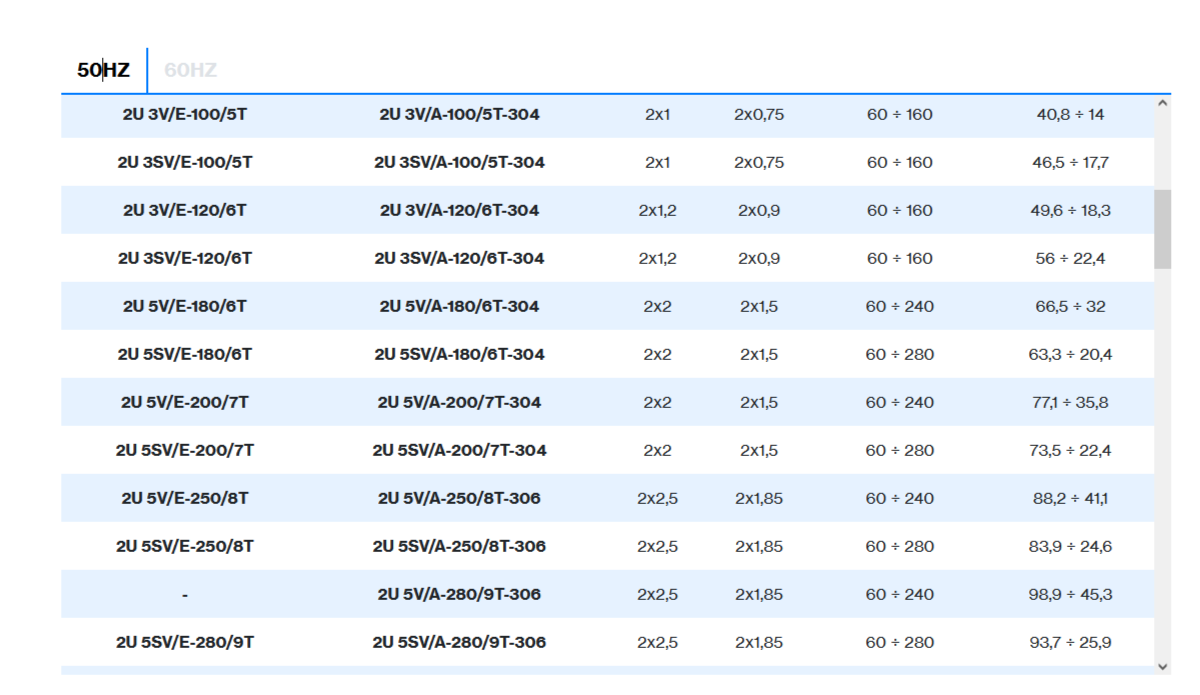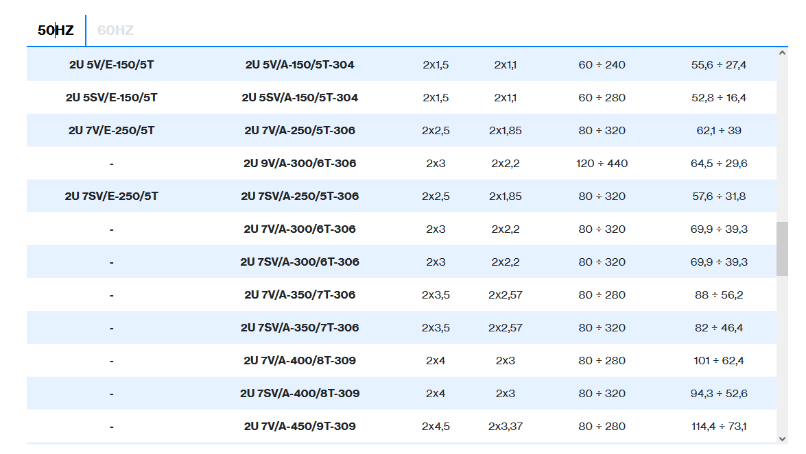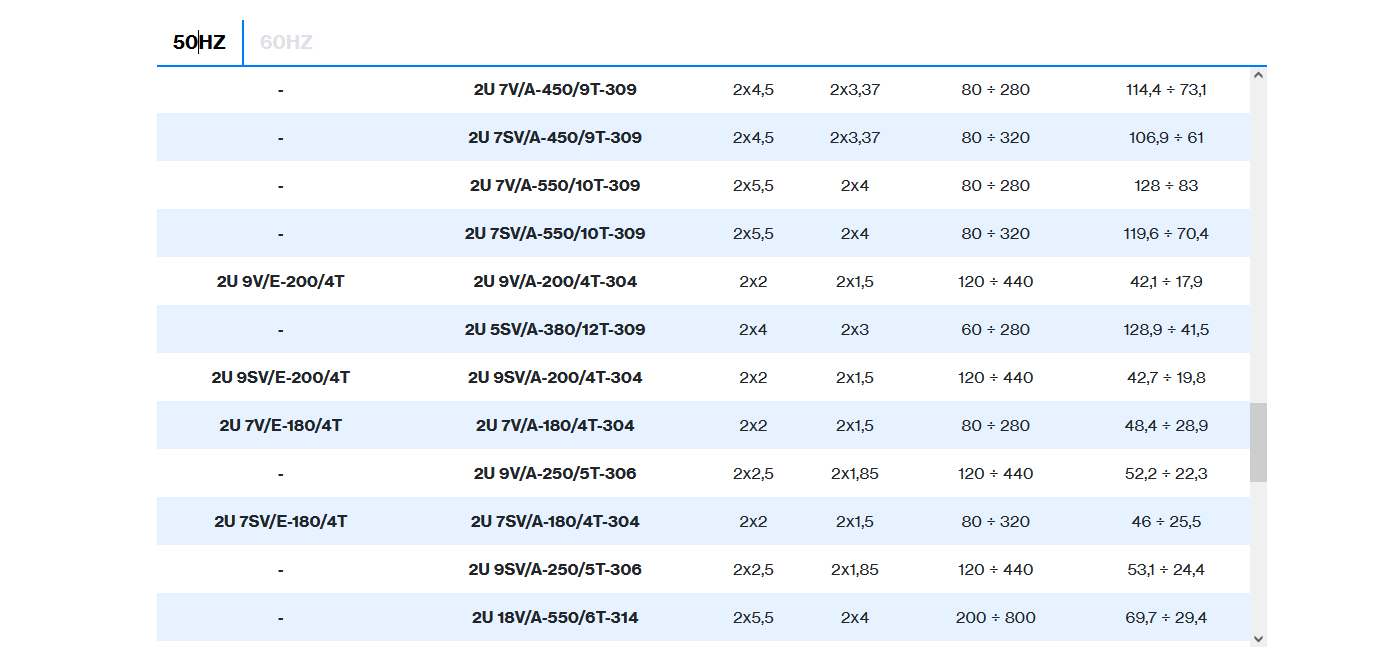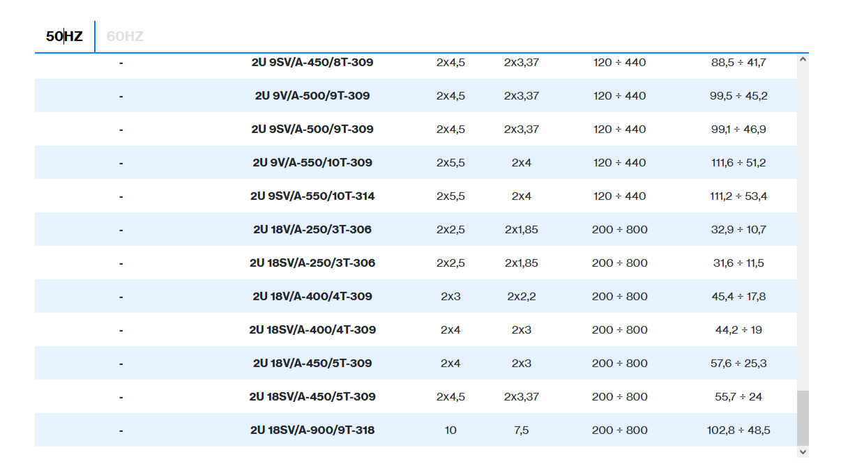 | 2 poles induction motor | 1~ 230V-50Hz , 3~ 230/400V-50Hz ≤ 4kW , 3~ 400/690V-50Hz > 4kW |