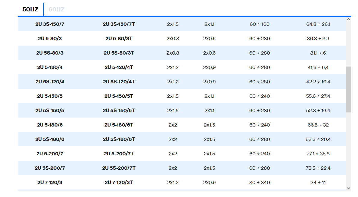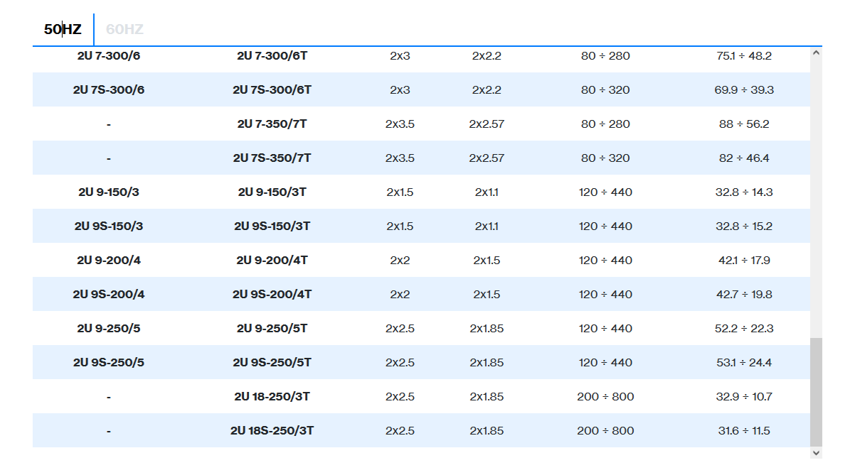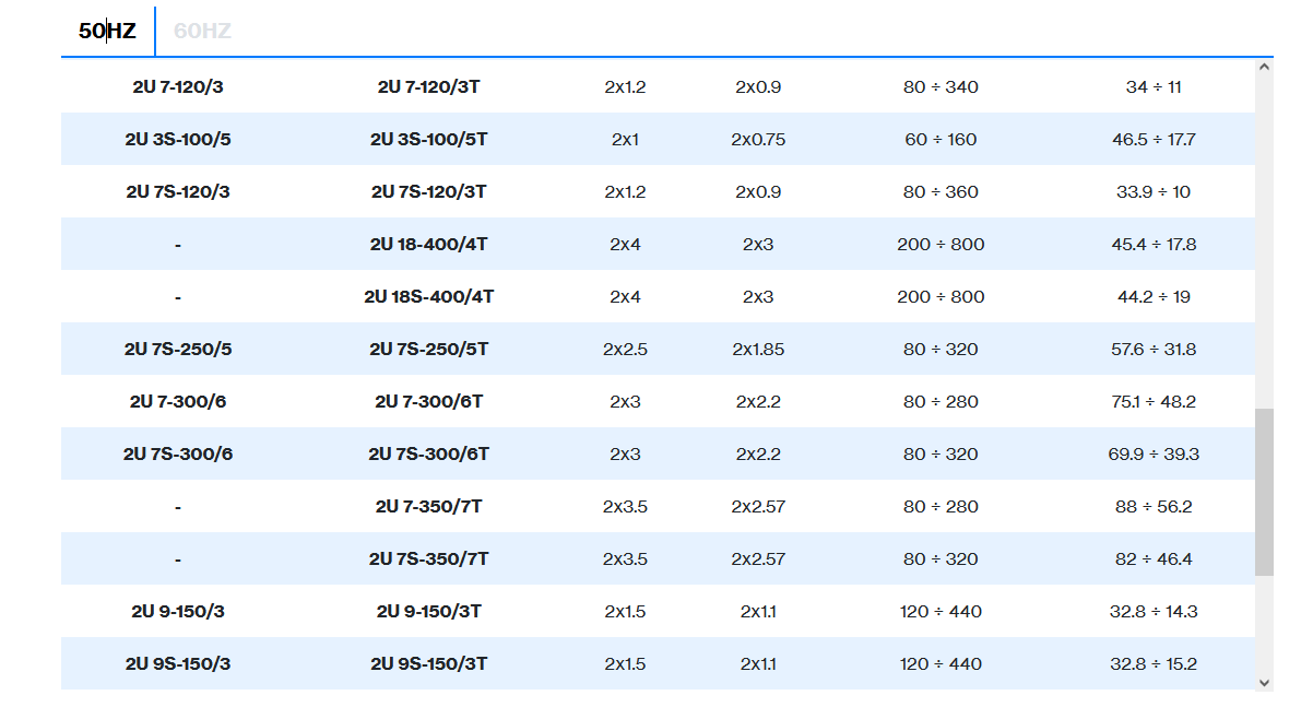 | 2 poles induction motor | 1~ 230V-50Hz , 3~ 230/400V-50Hz ≤ 4kW , 3~ 400/690V-50Hz > 4kW |