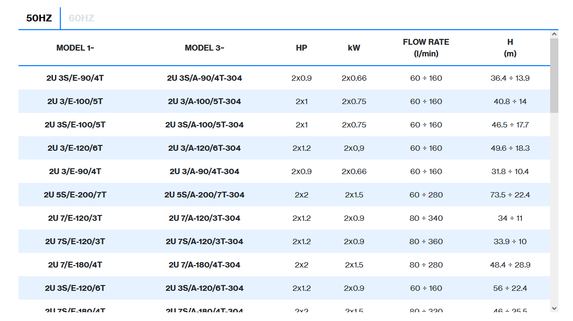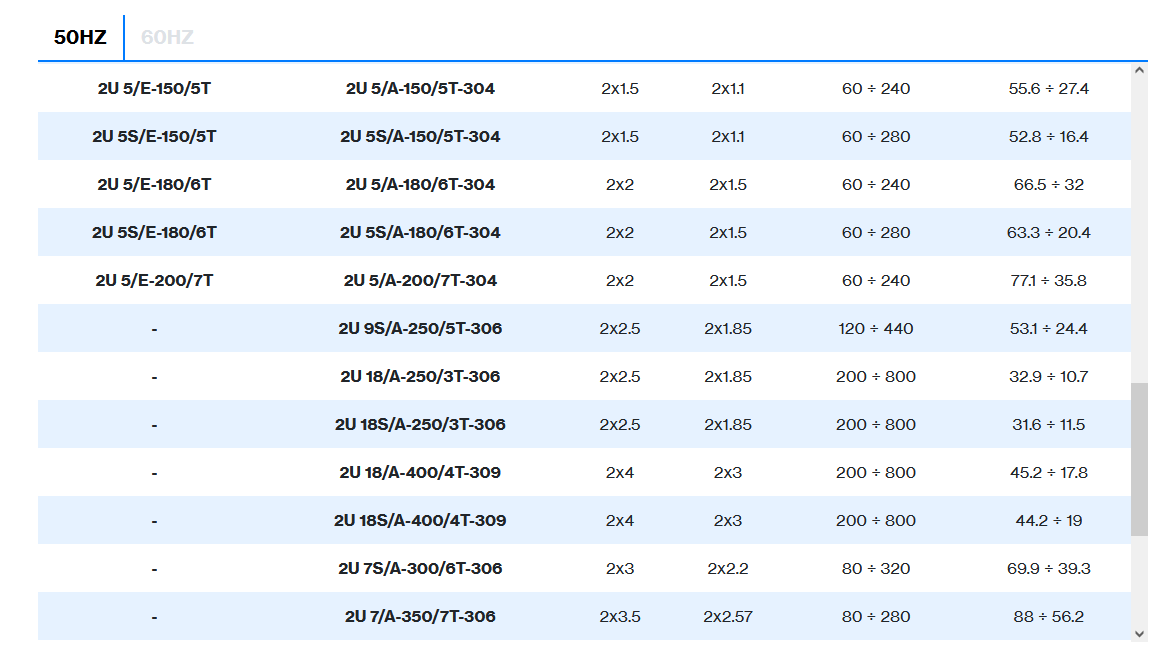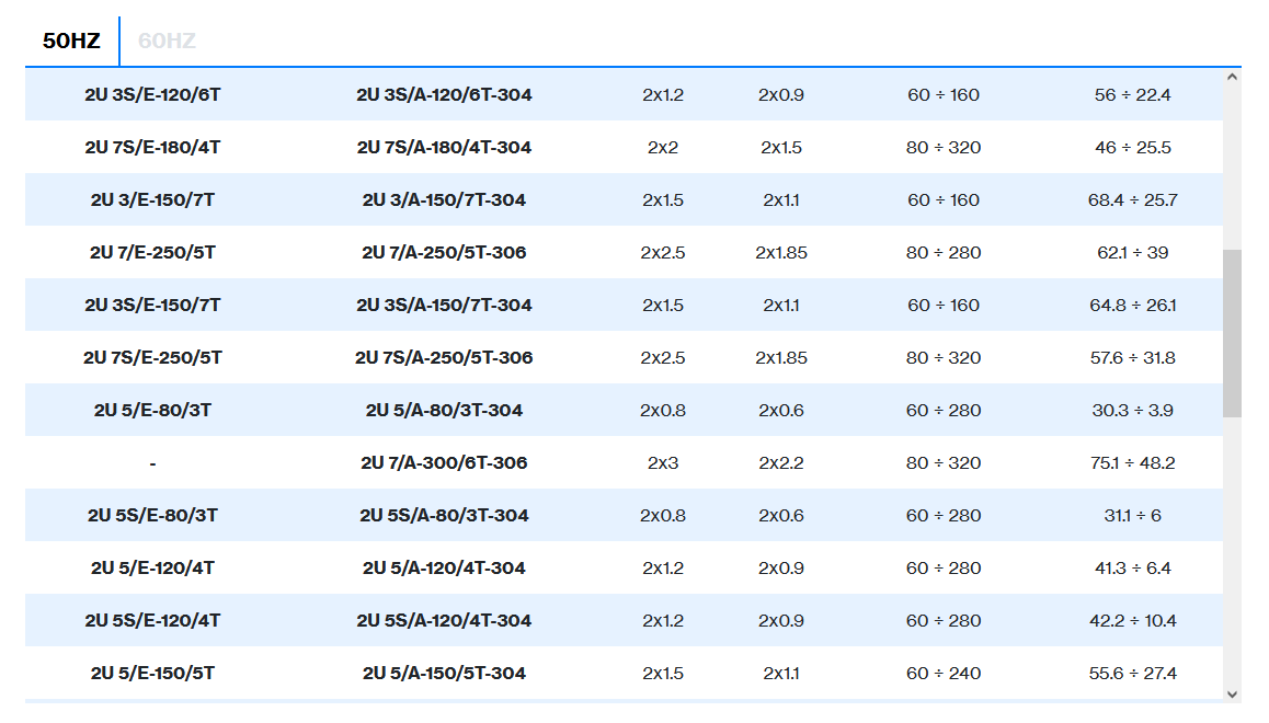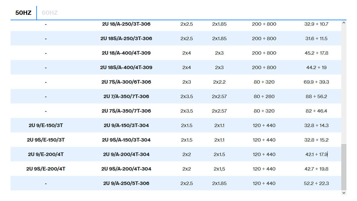 | 2 poles induction motor | 3~ 230/400V-50Hz ≤ 4kW, 3~ 400/690V-50Hz > 4kW |