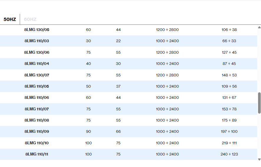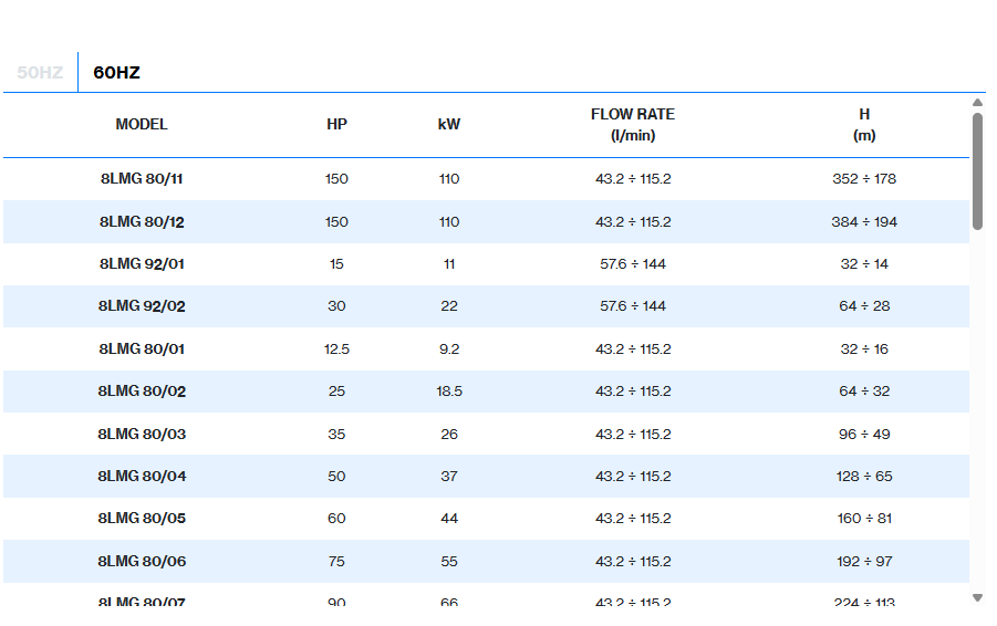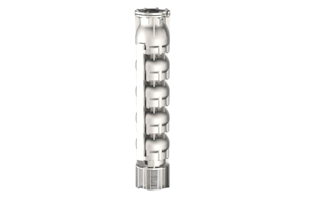 Submersible multistage centrifugal pumps for 8” wells. Check valve built into the delivery outlet. Pump flange for coupling with motors are made according to NEMA standards. Most common applications are civil and agricultural.