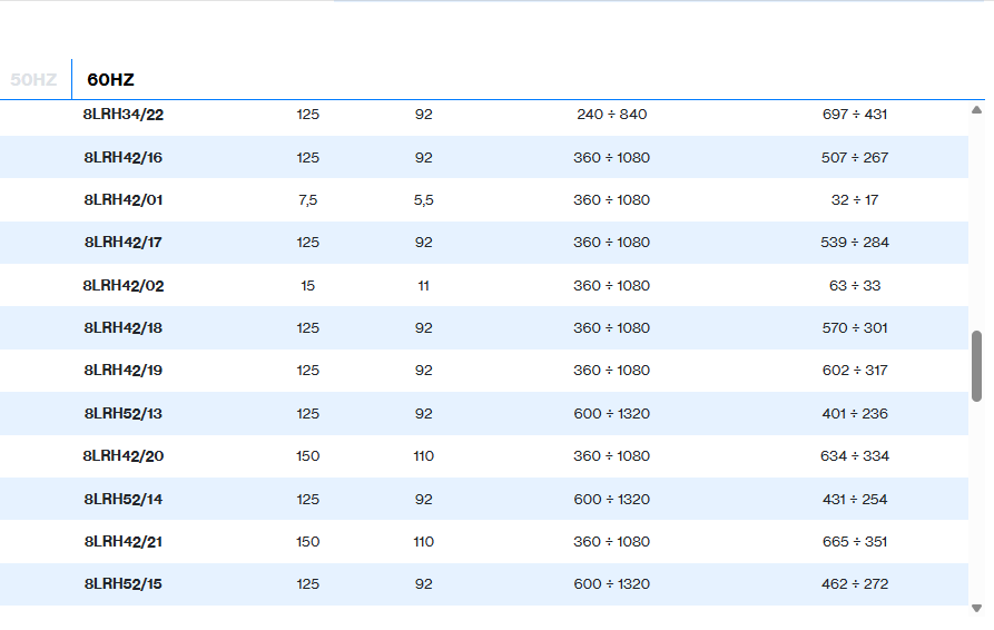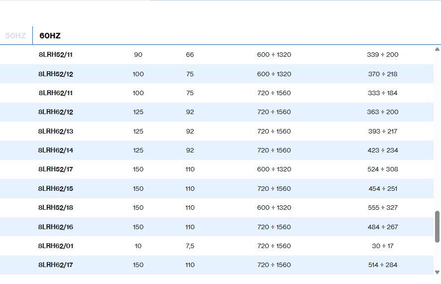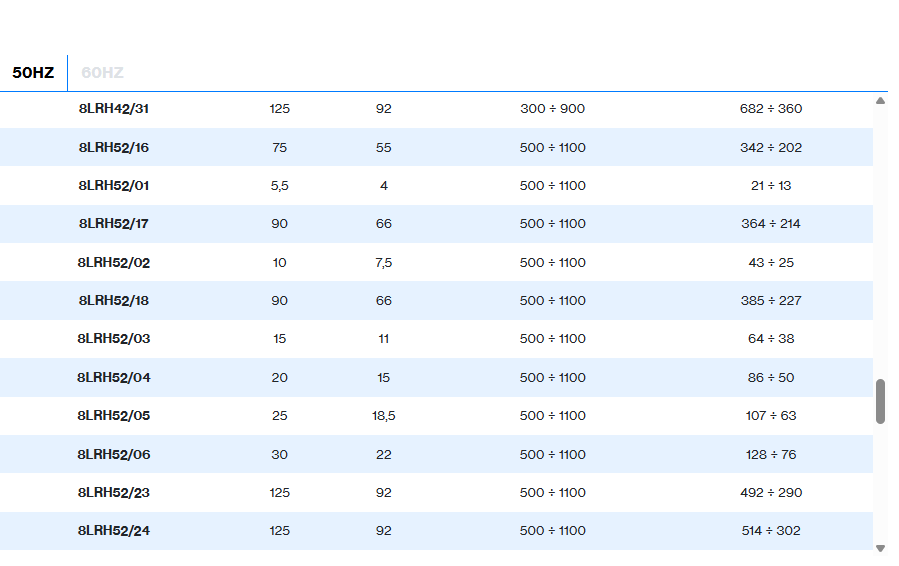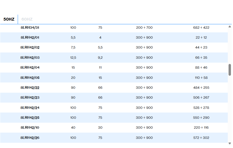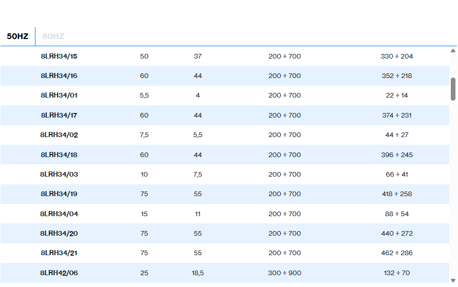 | Shaft pump side | stainless steel AISI 304 (LRHS), stainless steel AISI 316 (LRHX), Duplex EN 1.4462 (LRHD) |
