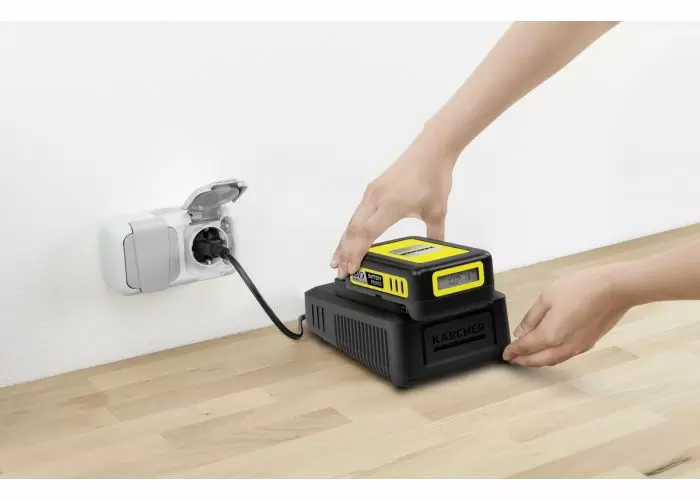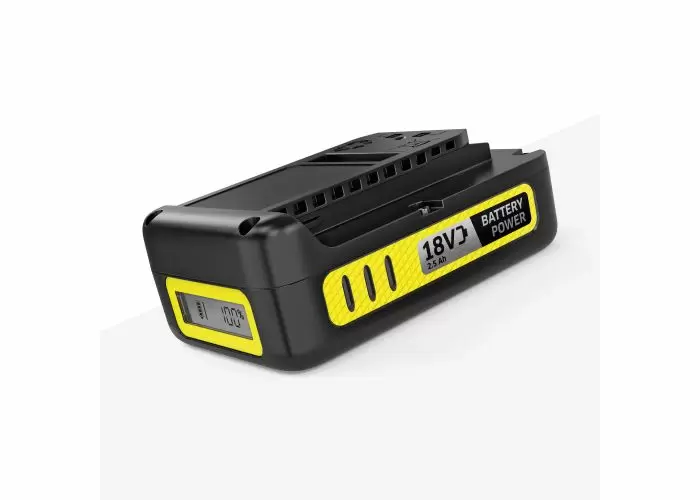 The battery status can be viewed at a glance thanks to innovative Real Time Technology: The integrated LCD display shows the remaining running time, remaining charging time and charge level, depending on which device you are using. The lithium-ion cells guarantee consistent performance and prevent self-discharge and memory effect (loss of capacity due to frequent partial discharge). The 18 V / 2.5 Ah Battery Power exchangeable battery is suitable for use in all devices on the 18 V Karcher battery platform. Feature and Benefits Innovative Real Time Technology The integrated LCD display shows the remaining running time, charging time and state of charge at all times. 18 V Karcher battery platform For use in all 18 V Karcher Battery Power battery platform devices. For use in all 18 V Kärcher Battery Power+ battery platform devices. Powerful lithium-ion cells The lithium-ion battery guarantees consistent power while preventing self-discharge and memory effect. Automatic storage mode Extends the lifetime of the cells. IPX 5 rated – protected against jets of water from all directions Reliable protection during jobs that use jets of water. Top performance thanks to efficient heat buffering and intelligent battery management. Protects the battery against overloading, overheating and deep discharge. Kärcher’s battery casings are extremely shock-resistant. Specifications Technical data Battery platform – 18 V battery platform Battery type – Lithium-ion replacement battery Voltage (V) – 18 Capacity (Ah) – 2.5 Energy (Wh) – 45 Weight (kg) – 0.5 Weight incl. packaging (kg) – 0.6 Dimensions (L × W × H) (mm) – 133 x 88 x 50