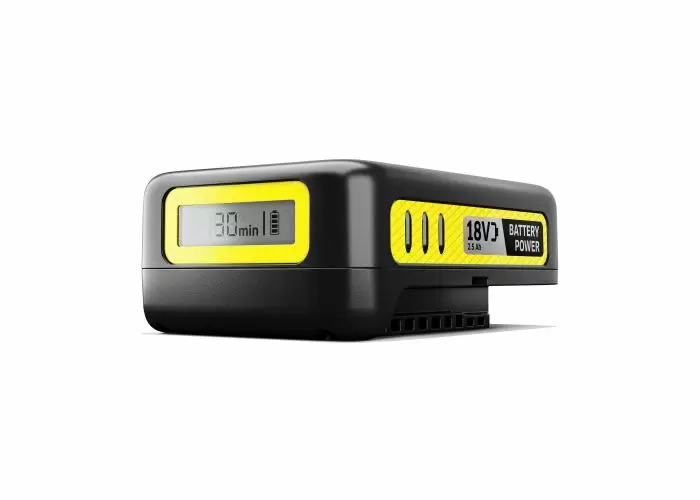 18 V / 2.5 Ah Kärcher Battery Power exchangeable battery with innovative Real Time Technology incl. LCD display to indicate battery level. Suitable for use in all devices on the 18 V Kärcher battery platform.