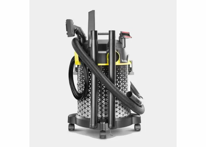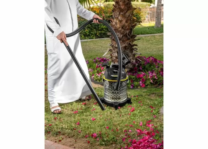 Dynamic WOW design with impressive performance: the DVAC 1800 drum vacuum cleaner impresses with adjustable suction power to clean different application areas using a switchable floor nozzle, upholstery nozzle or crevice nozzle. The practical storage option for accessories and an ergonomic carrying handle make it particularly easy to store and carry. Where vacuuming is not possible, the practical blower function proves useful.