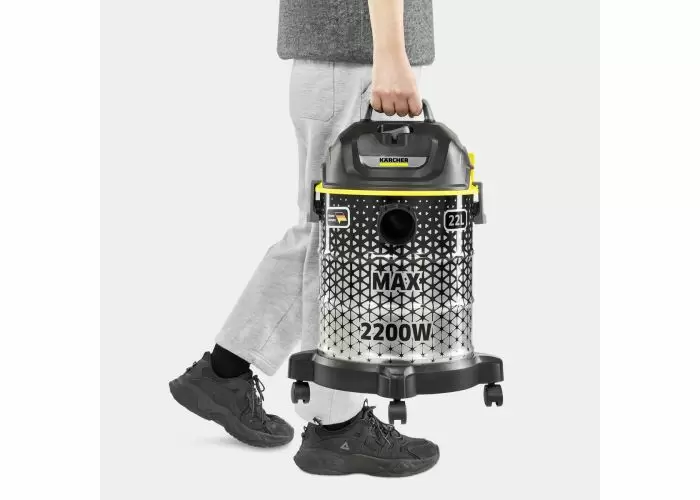Wide operating radius and large dust container: with a long electric cable and a 22-litre dust container, the DVAC 2200 drum vacuum cleaner enables long operating times without annoying stops. It not only impresses with its powerful performance but also with its impressive, dynamic WOW design. Thanks to the adjustable suction power and various accessories, the vacuum cleaner can be used in many different ways. The switchable floor nozzle can be quickly and easily adjusted to the floor covering, ensuring optimum dirt pick-up. Practical accessory storage and an ergonomic carrying handle make storage and transportation very easy. Where vacuuming is not possible, the practical blower function can help.