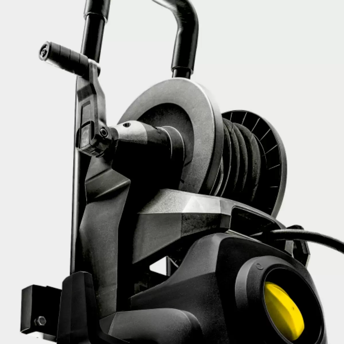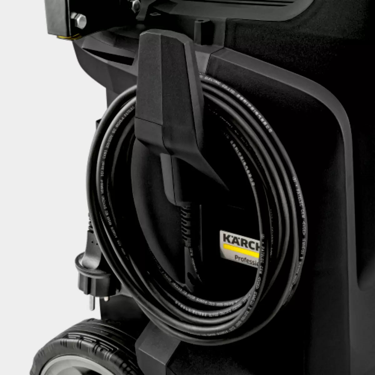 Nozzle storage. Manual hose reel. Integrated cable hooks.