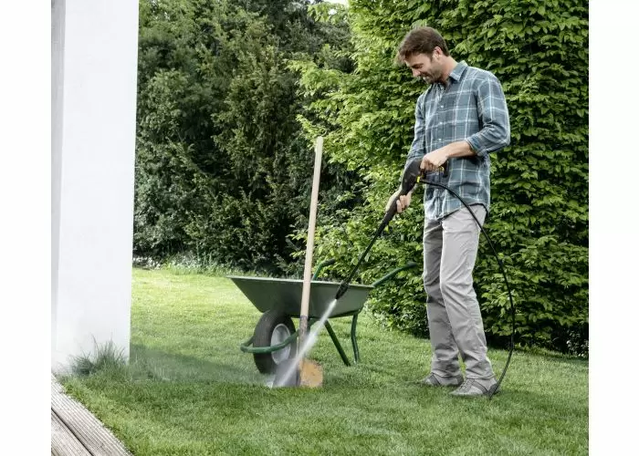 Whether it’s steps covered in moss, weather-worn walls or dirty garden tools, the K 2 Universal Edition pressure washer with its dirt blaster will have them spick and span in a flash. The compact device is ideal for all occasional cleaning tasks around the home and yard. The rotating jet of the dirt blaster provided even removes stubborn dirt. Thanks to its low weight and the built-in, handy carrying handle, you can easily transport the K 2 Universal Edition to where you need it. The Quick Connect system offers additional convenience as its quick coupling allows the three metre long high-pressure hose to be connected to and disconnected from the device and trigger gun easily. All of the included accessories can be easily stowed on the K 2 Universal Edition. This is made possible by the clever brackets on the device. Even the power cable can be stowed away neatly in the integrated cable slot.