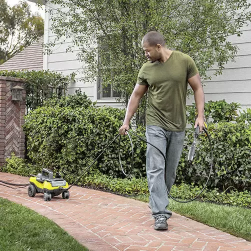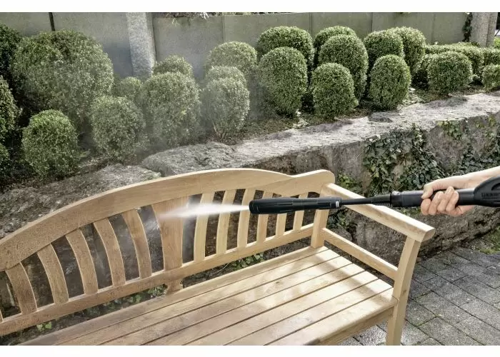 The compact K 3 Follow Me 4-wheel pressure washer stands for uninterrupted working and is, for example, ideal for slightly to moderately dirty entrances, cars or garden furniture.
