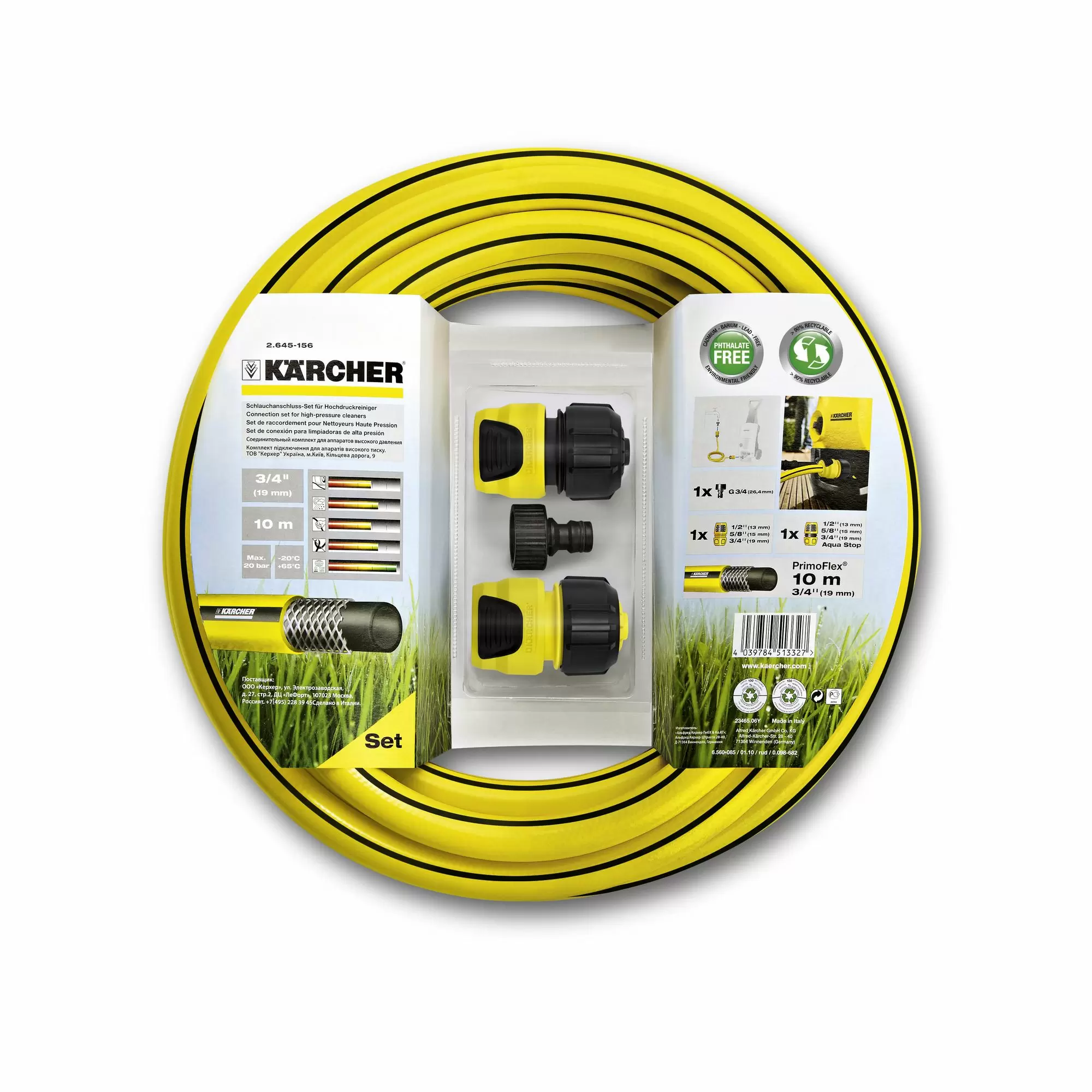 The HR 25 hose reel for mobile or stationary use is perfect for watering small to medium-sized areas and gardens. The practical hose storage is characterised by its robust, non-corrosive aluminium frame. The compact dimensions save space and simplify the work. Equipment details: wall bracket, fixing screws, 15 m 1/2″ PrimoFlex® hose, nozzle, 4 universal hose connectors Plus (3x without and 1x with Aqua Stop), as well as a G3/4 tap adapter. So nothing can now get in the way of your gardening. For the innovative Kärcher hose storage systems set new standards with regard to function, design and quality. Ideal for quick winding and unwinding of the hose, without manual guide – with minimum space requirement. Kärcher hose reels are compatible with all available hook-and-loop systems. Kärcher: The wise choice for your watering needs.