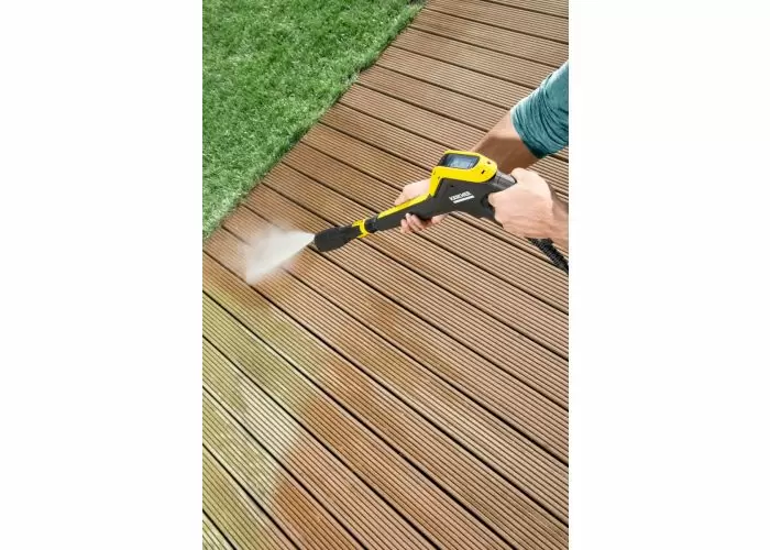 Trigger gun with LCD display and buttons for pressure regulation or cleaning agent dosing. Includes boost mode for extra power for tackling stubborn dirt. The rotating 3-in-1 Multi Jet contains three different nozzles for easy replacement. Quick Connect for easily connecting high-pressure hose and accessories.