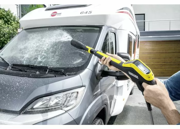 Simply connect the K 7 Premium Smart Control Flex pressure washer to the Kärcher Home & Garden app on your smartphone via Bluetooth – and cleaning becomes even easier and more efficient. This is because the application consultant in the app gives practical tips and tricks for many cleaning situations and cleaning tasks. The app also offers many other useful functions such as assembly instructions, maintenance and care instructions, as well as the Kärcher Service portal. Another practical feature is that the device has a boost mode for extra power, meaning even stubborn dirt is not an issue. The pressure levels can be set on the G 180 Q Smart Control trigger gun with LCD display or transferred to the trigger gun with the help of the application consultant via the app – so that nothing can go wrong when cleaning. Other equipment details include the 3-in-1 Multi Jet spray lance for a wide range of applications without having to change spray lance, the PremiumFlex high-pressure hose, the Plug ‘n’ Clean detergent system, the high-quality aluminium telescopic handle and the parking position for readily accessible accessories.