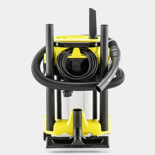 The WD 3 S V-17/4/20 is powerful and energy-efficient with power consumption of only 1000 W. The machine as well as the suction hose and the Clips floor nozzle are perfectly matched – for the best cleaning results on dry, wet, fine or coarse dirt. The wet and dry vacuum cleaner impresses with its compact design and a robust 17 l stainless steel container, 4 m cable, 2 m suction hose and its fleece filter bag. Thanks to the single-piece cartridge filter, it is possible to vacuum both wet and dry dirt without filter replacement. The blower function is useful for cleaning areas that are difficult to access. The hose is stored by hanging it on the machine head, thus saving space. The cable can be stored on the cable hook, tubes and floor nozzles at the bumper. The “Pull & Push” locking system allows the simple opening and closing of the container. The handle of the vacuum cleaner can be removed and the accessory can be connected directly to the suction hose. Also clever: Tools or small parts can be set down on the area on the machine head. The ergonomically shaped carrying handle enables comfortable transport.