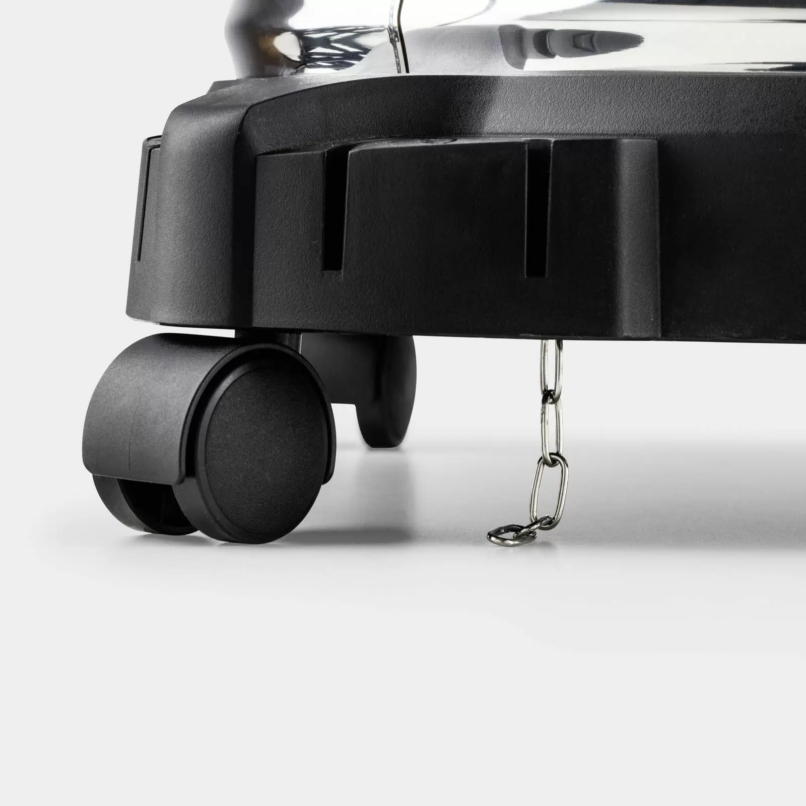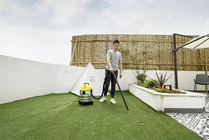 Feature and Benefits Suitable for numerous uses Effortlessly picks up wet and dry dirt. Practical blower function Where vacuuming is not possible, the practical blower function can be used. 18 l stainless steel dust container Robust, impact and corrosion resistant, and with a large capacity. Specifications Technical data Rated input power (W) – 1500 Suction Power* (W) – 200 Container capacity (l) – 18 Container material – Stainless steel Power cable (m) – 5 Nominal size of accessory (mm) – 35 Power supply (V/Hz) – 220 – 240 / 50 – 60 Sound pressure level (dB(A)) – 76 Weight without accessories (kg) – 4.7 Weight incl. packaging (kg) – 7 Dimensions (L × W × H) (mm) – 399 x 399 x 519 Equipment Suction hose: 1.5 m Suction tubes: 2 piece(s), 0.5 m, 35 mm, Plastic Wet and dry floor nozzle: clips Dry vacuum nozzle: Can be switched for carpet and hard floors Crevice nozzle Paper filter bag: 1 piece(s) Foam filter Textile filter bag: 1 piece(s) Blower function Hose storage on the device head Additional accessory storage on the device head Storage space for small parts Cable hook Accessory storage on the device Wheels
