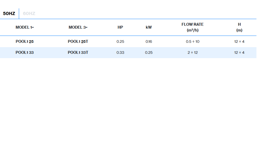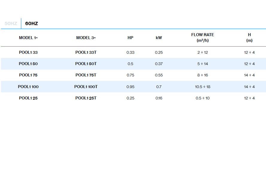 Self priming pump for pools with a large builtin pre-filter, which, together with the excellent hydraulic performance of the pump, generates a very high filtration capacity. The transparent polycarbonate lid easily allows inspection of the pre-filter sieve. Pump body, seal housing and diffuser reinforced with glass fibre polypropylene are resistant to chemical products used for pools and guarantee excellent duration.