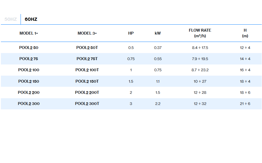 Self-priming pump for pools with a large builtin pre-filter, which, together with the excellent hydraulic performance of the pump, generates a very high filtration capacity. Includes a transparent polycarbonate pre-filter lid with opening key for effortless opening and easy inspection of the sieve. Pump body, seal housing and diffuser reinforced with glass fibre polypropylene are resistant to chemical products used for pools and guarantee excellent duration.