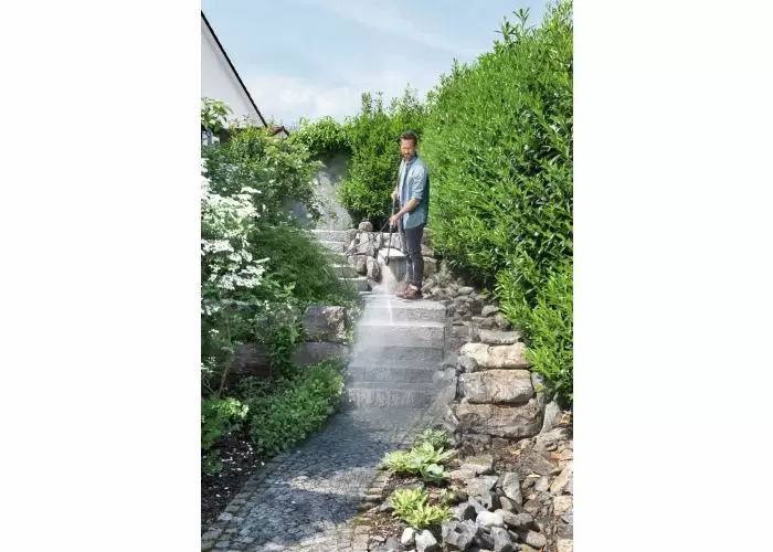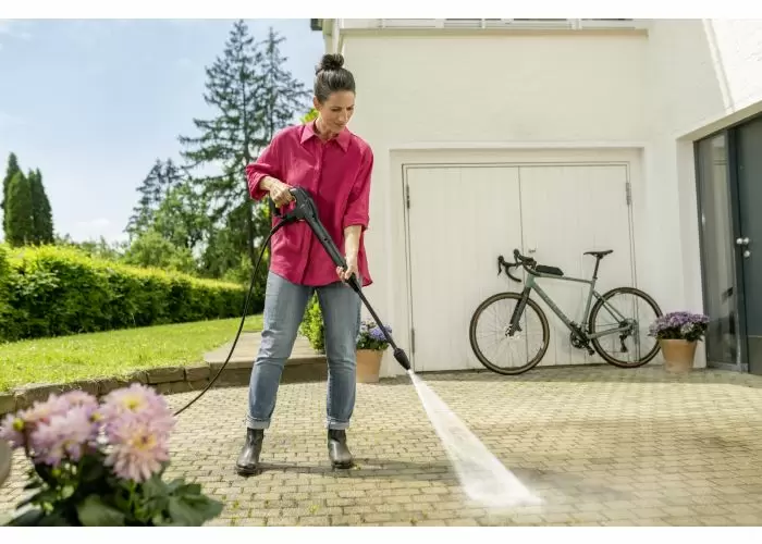 The K5 Classic combines maximum convenience with full power. Thanks to its innovative hose storage concept, the high-pressure hose can be easily and securely wound around the front cover after use. Thanks to its compact dimensions, the whole device is easy to transport and can be stored anywhere – on a shelf or in a car boot. A height-adjustable telescopic handle ensures even greater convenience while working. It is also equipped with a Quick Connect trigger gun, an 8 m high-pressure hose, a Vario Power spray lance (VPS), a dirt blaster and a water filter. The K5 Classic pressure washer, with its universal motor and an area performance of 40 m²/h, is ideally suited to regular use when tackling moderate dirt.